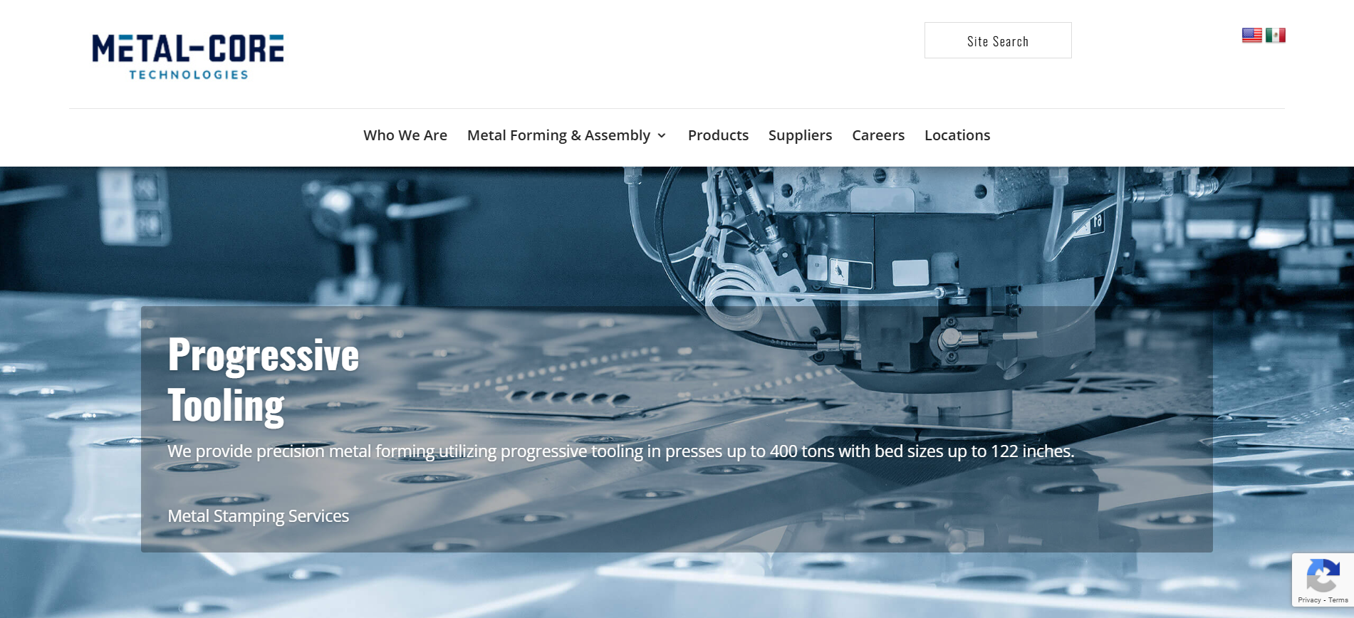 Industrial manufacturing company website with product catalogs and detailed specifications.